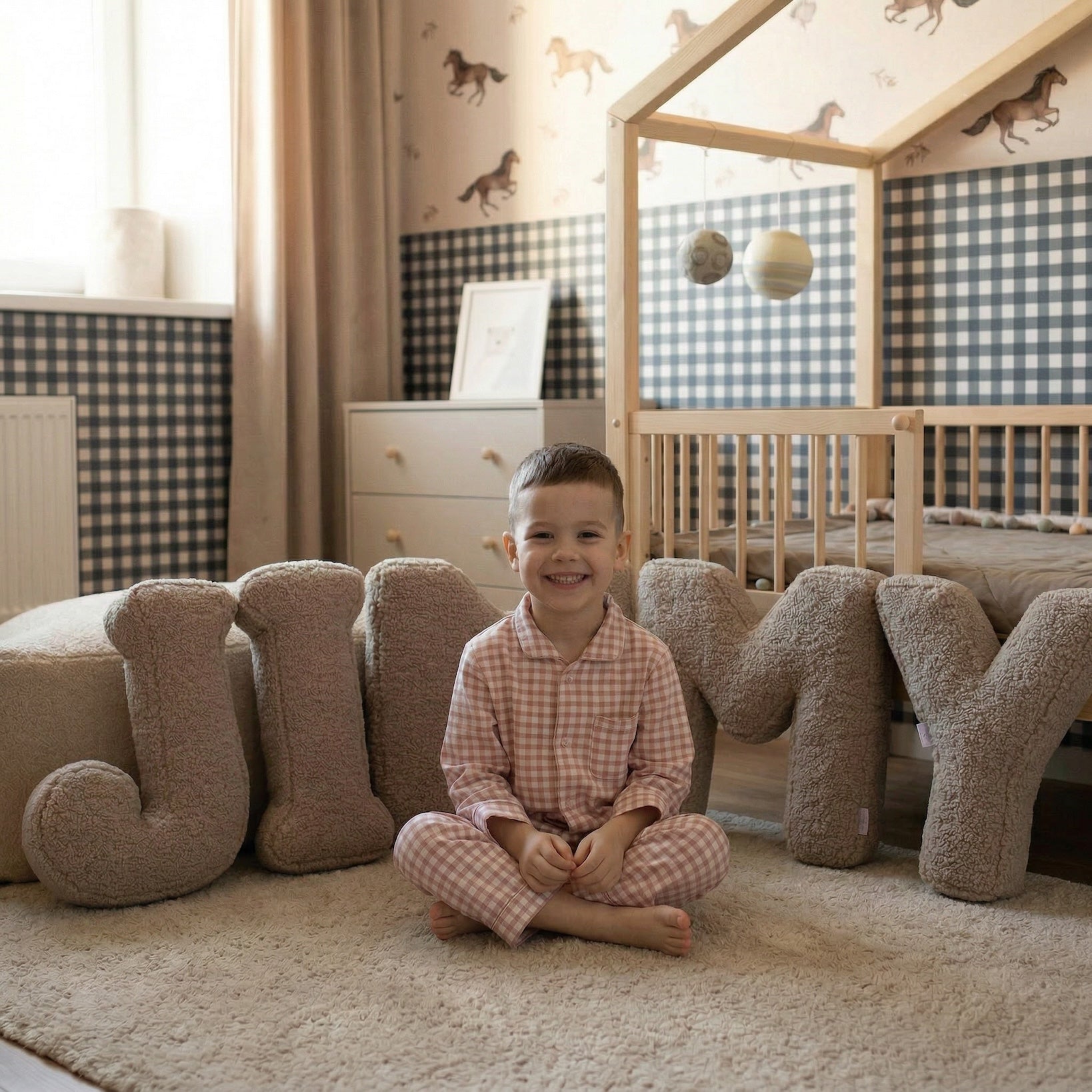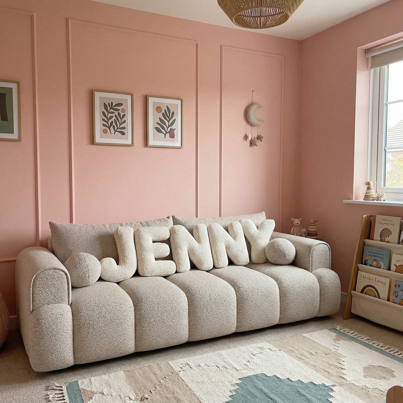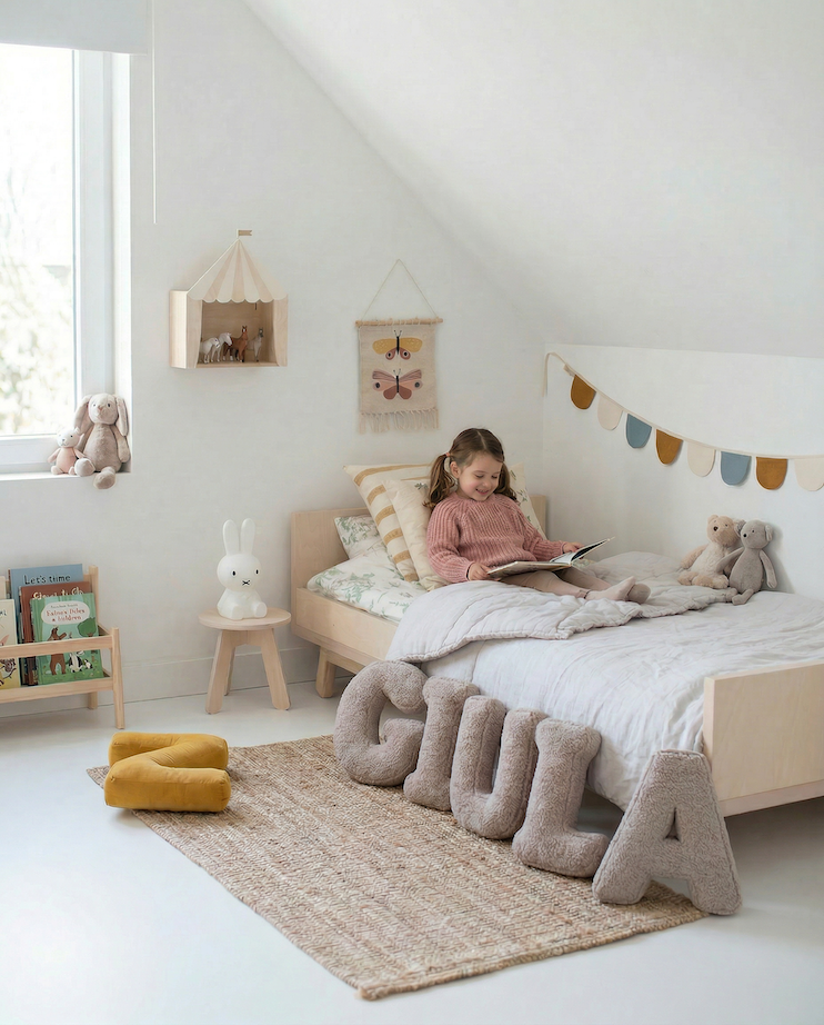 Pillows in the shape of letters are also just a nice and pretty addition to children's interiors. The neutral, creamy colour will fit into any room.