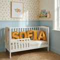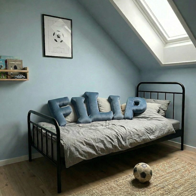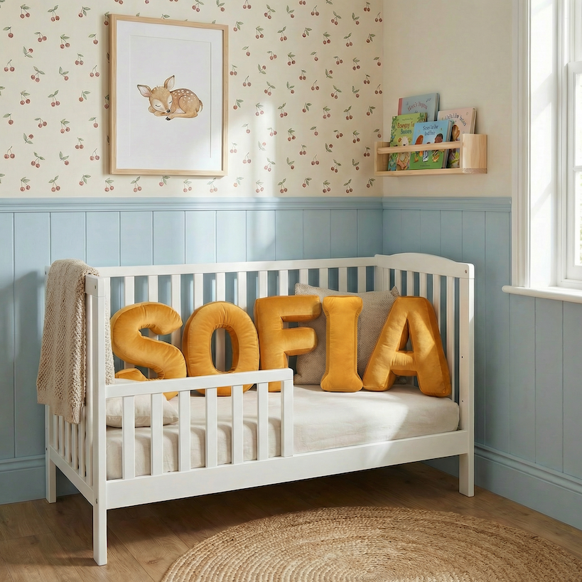 Pillows in the shape of letters are also just a nice and pretty addition to children's interiors. The neutral, creamy colour will fit into any room.